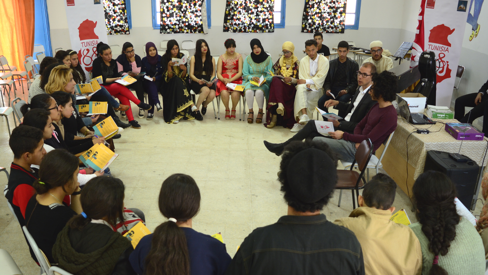 Tunisia88 is a nationwide program that supports extracurricular music clubs led by more than 3000 student members annually. These clubs follow an annual cycle of activities, including leadership training for social cohesion and creativity training to enable them to compose their own songs with their own words, melodies, messages and videos. They also create their own events to have a positive impact on their communities.
